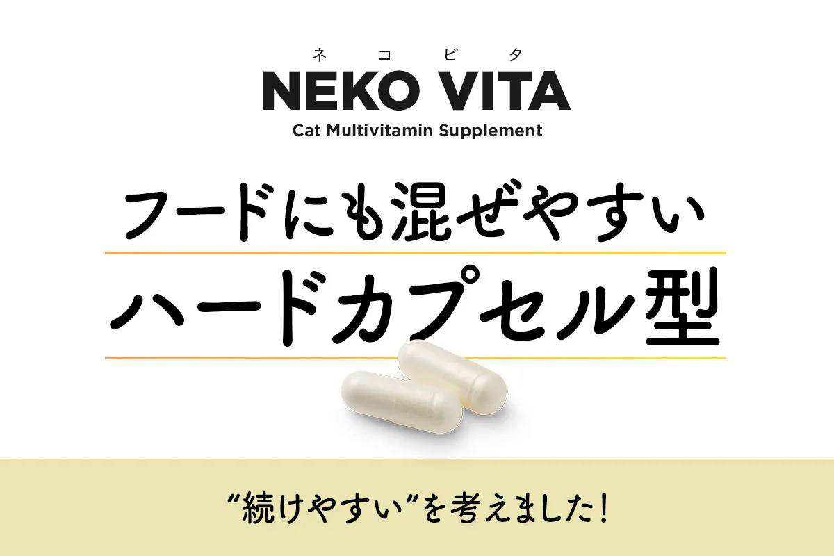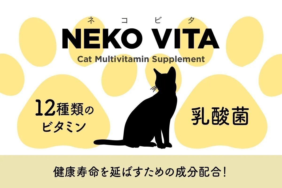 マルチビタミンサプリメント「ネコビタ」を毎日のコミュニケーションに追加するだけで偏食や加齢による栄養不足、毛ヅヤや元気の低下に悩む猫たちの