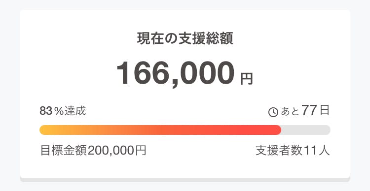 83%!166000円のご支援いただきました!
