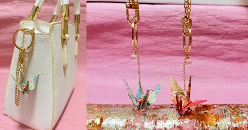 このキーホルダーには、そんな2羽の鶴が寄り添っています。