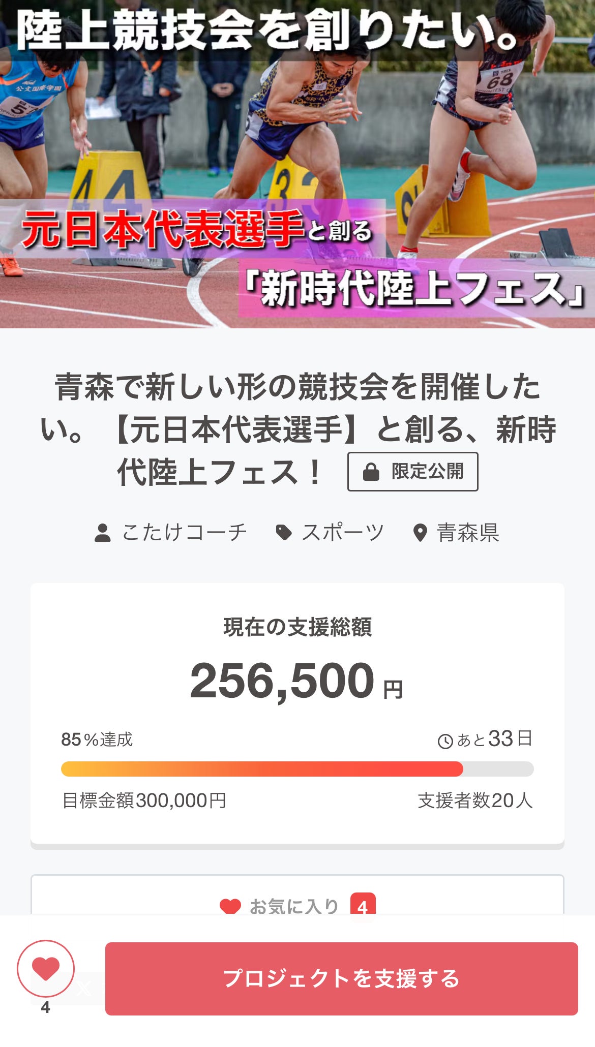 すでに85%の支援額を達成しております!!!