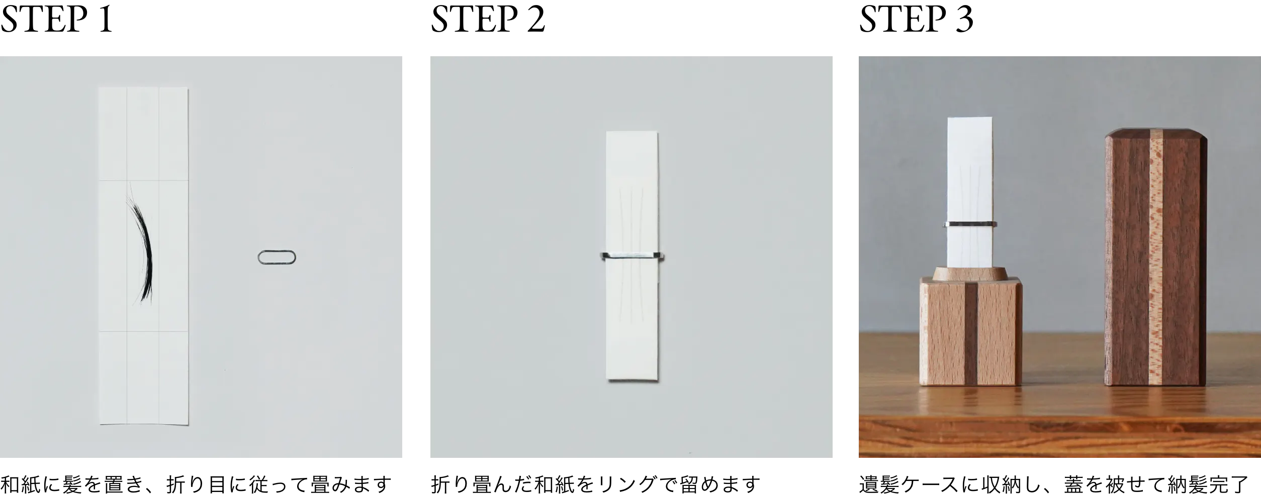 髪を納めるので、家に置く際の心理的ハードルが少なく、コンパクトで置き場に困らないため、受け取りやすく扱いやすい。