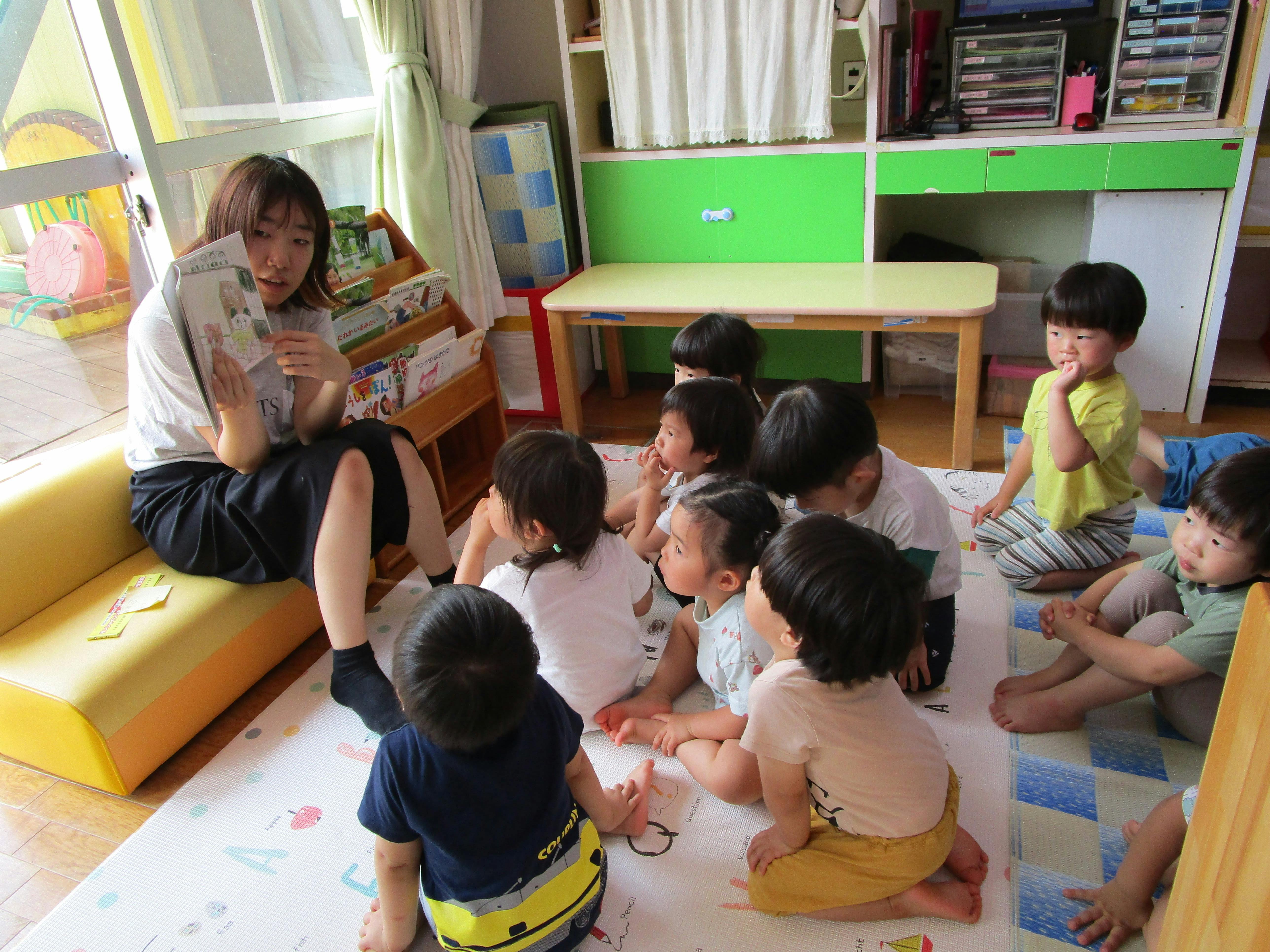 特に、2歳児クラスの子たちなど、普段なかなか集中しづらい年齢の子たちが真剣に耳を傾け、真剣なまなざしで絵本を見つめてくれる姿に、本当に嬉しく思います。