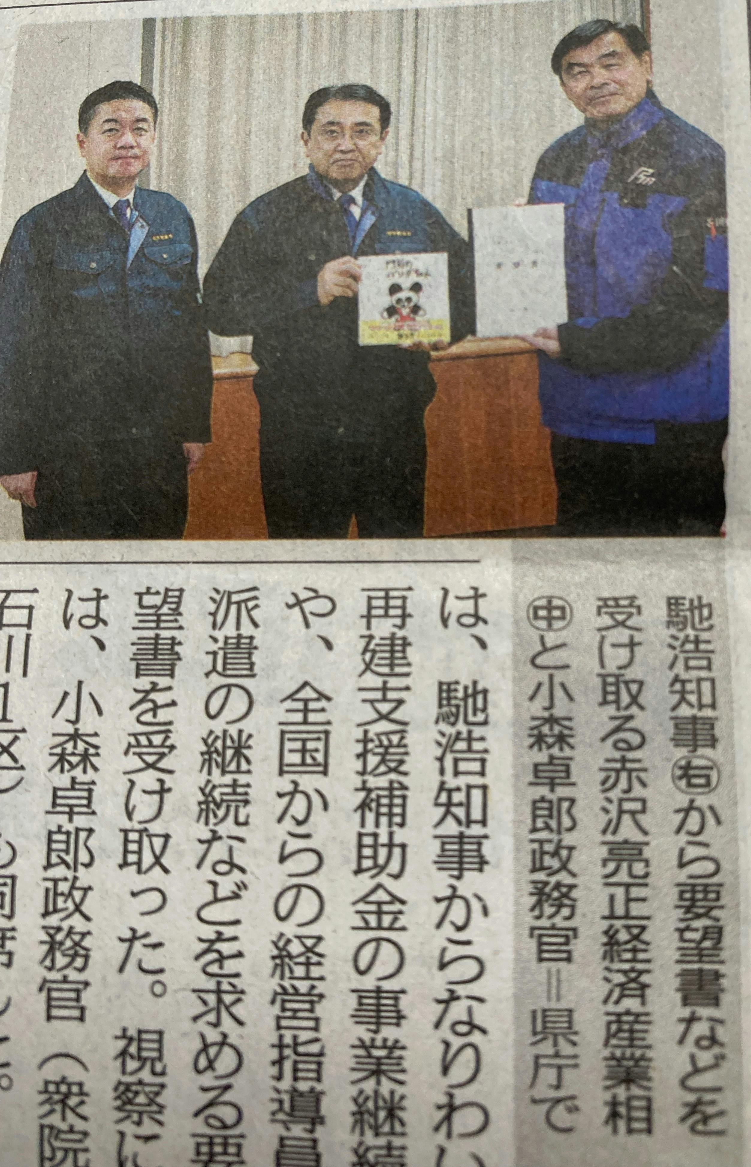 11月23日に行われた、赤沢経済産業大臣と馳石川県知事との会談の記事が、本日の北陸中日新聞に掲載されました。