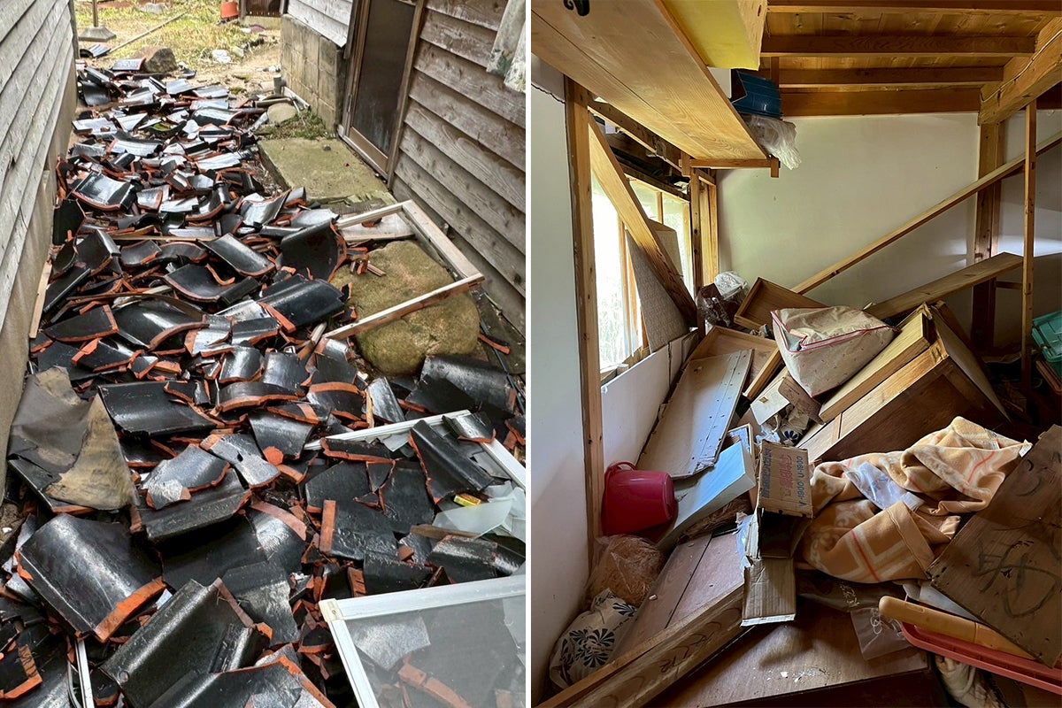 家は大きく傾き、柱も梁も無残に折れ、まさに崩壊寸前の状態――