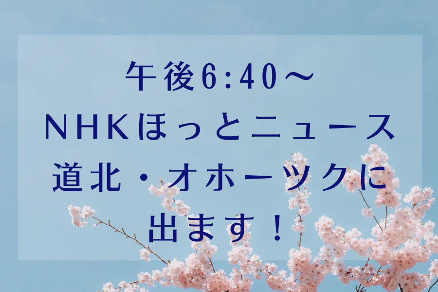 そして、今日8月21日(木) 午後6:40〜午後7:00 ほっとニュース道北・オホーツクに出ます!