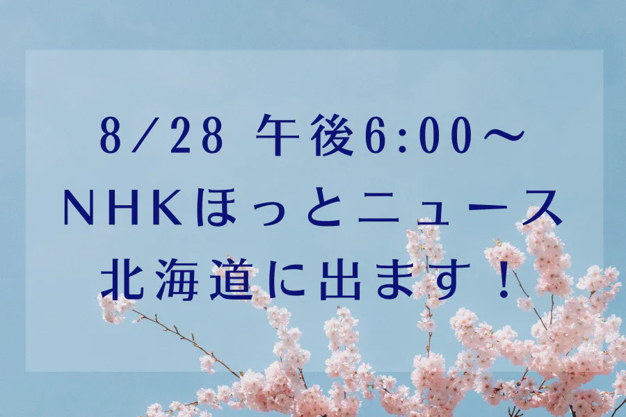 8/28(木) 午後6:00〜 NHKほっとニュース北海道に出ます!