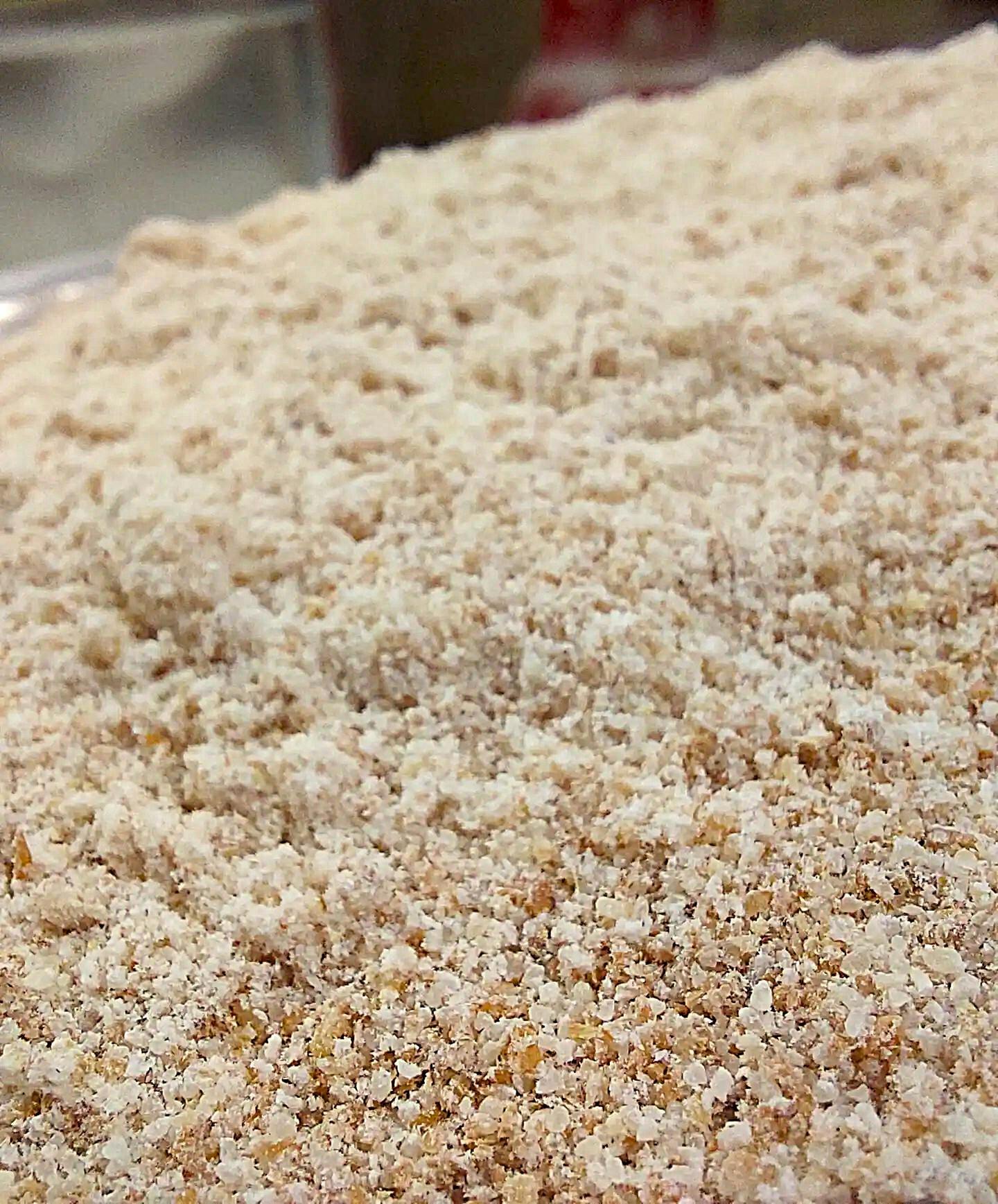 新鮮な全粒粉は鼻を近づけると、甘い芳しい香りが、口に入れるとほんのり甘いんです