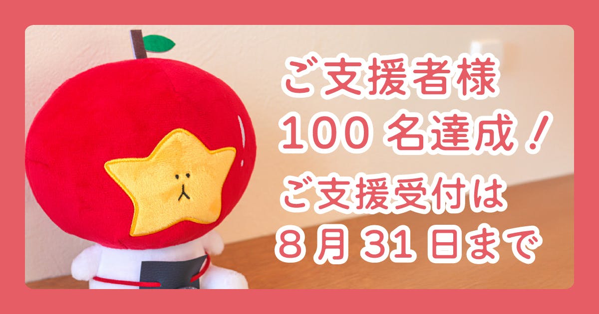 ご支援者様100名達成!募集は8月31日まで!