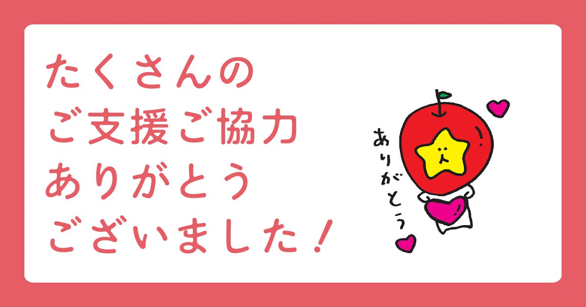 終了間近!ご支援・ご協力のほどありがとうございました。