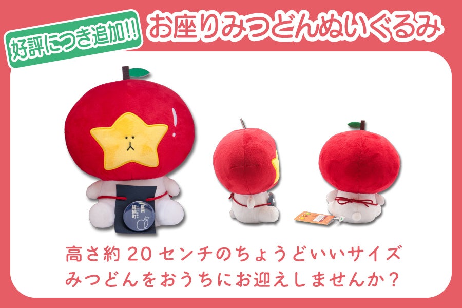 クラファン開始後すぐに売り切れとなってしまった約20センチサイズのぬいぐるみ。追加しましたが残りわずかとなっています。ぜひおうちにみつどんをお迎えください!