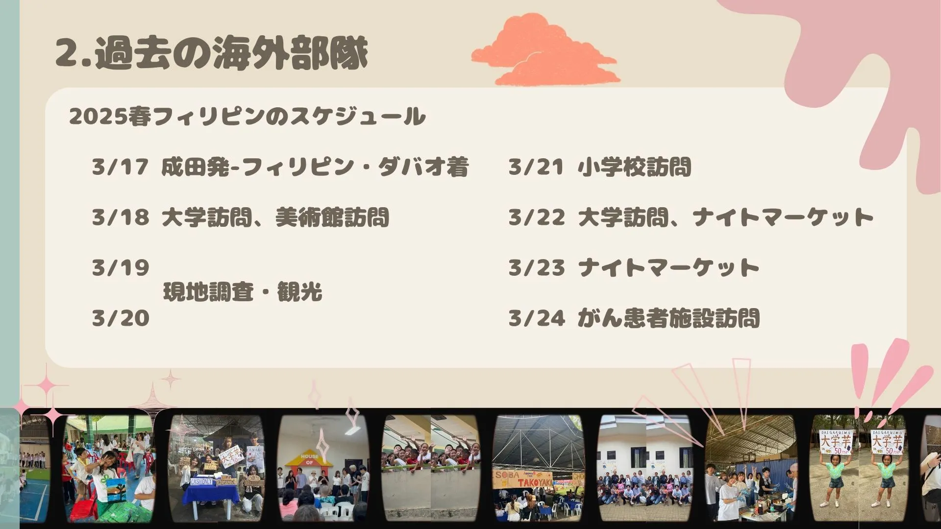 海外部隊の特徴として、学生がゼロから作り上げることが挙げられます。