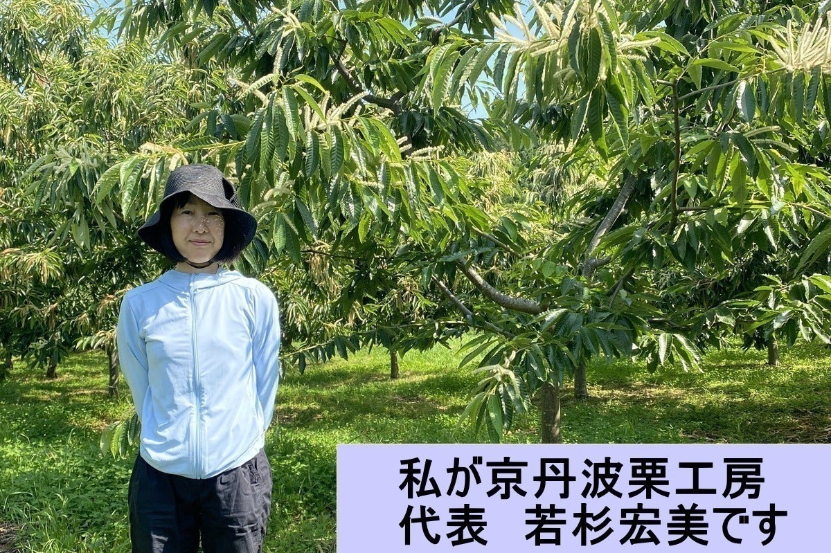 はじめまして。私は京都府・京丹波町で新たに就農した、京丹波栗工房の若杉宏美です。 豊かな自然、昔ながらの暮らし、そして人のあたたかさに惹かれ、この地に移り住みました。 そんな私が出会ったのが、「丹波栗」という宝物でした。 驚くほど大きく、香ばしい香りがふわっと広がる。初めて手にした瞬間、栗に対する価値観が 一変しました。「この栗を絶やしてはいけない。」 そう思った私は、地域で半世紀以上にわたり丹波栗づくりを続けてきた丹波マロンファームの名人・山内善継さんのもとで、栗の栽培技術を一から学び始めました。 山内さんは、三代にわたり丹波栗一筋。気候を読む力、土を育てる知恵、収穫の勘と経験。その 全てが、丹波栗の味に結びついています。