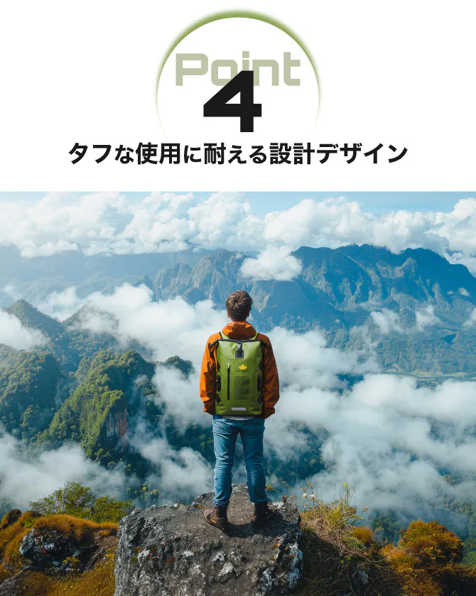 このバックパックはタフなアウトドアでの使用を念頭に設計されています。