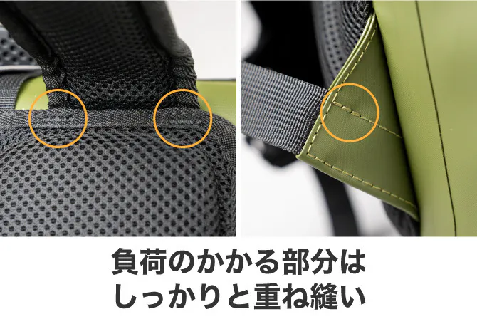 タフな使い方を想定し、負荷のかかる部分は念入りに縫製しています。