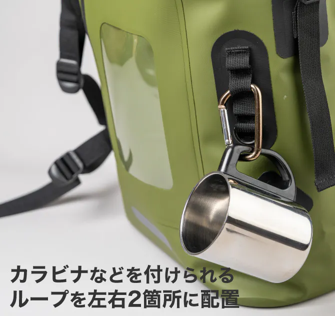 アウトドアで役立つループを左右に2箇所に配置し、利便性も追求しています。