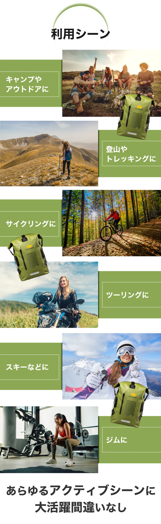 2010 年に設立されたZone Sport はオフィスと工場はどちらも中国の深センにあります。ポータブル アウトドアおよび旅行用品の大手メーカーであり、人々がアウトドアを楽しみ、ウォーター スポーツに参加できるように、消費者の旅行体験を向上させることを目指しています。製品には、防水電話ケースのほか、防水または耐水性のドライバッグやバックパック、防水クーラーバッグ、サイクリングバッグなどが含まれます。防水バッグ、防水ウエストバッグ、防水バックパック、屋外浴槽プールなど。アメリカのスーパーマーケットウォルマートや日本のディズニーランドなど世界60社以上の企業へのOEMを行っています。