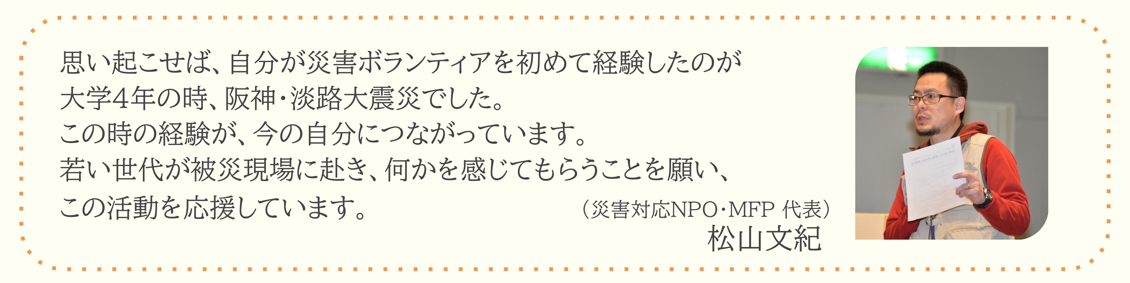 災害が起きたときに、すぐに動ける人がいる。そのことは、被災地にとっても、私たち全員にとっても希望です。