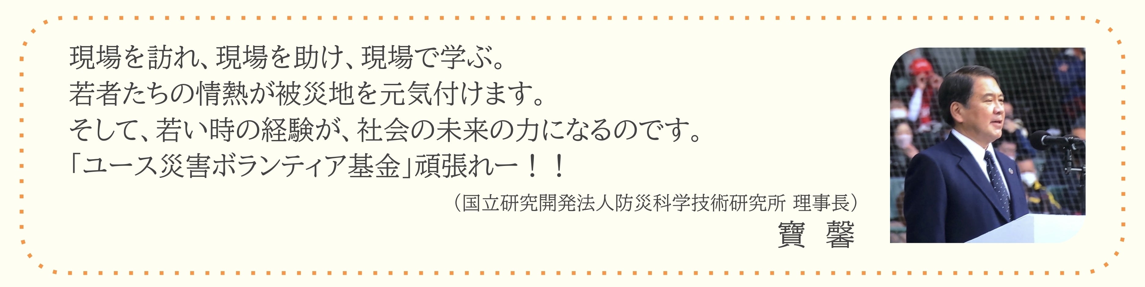 この基金を通して、若者の交通費や滞在費、活動に必要な装備を支援し、災害現場での学びと実践の機会を広げていきます。