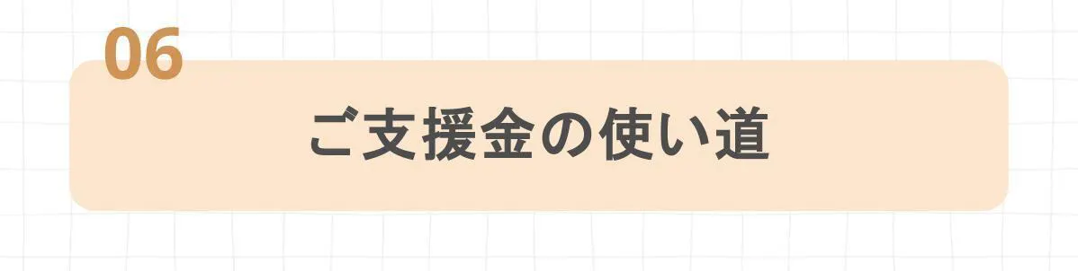 皆様からいただいたご支援金は、以下の用途に使用させていただきます。