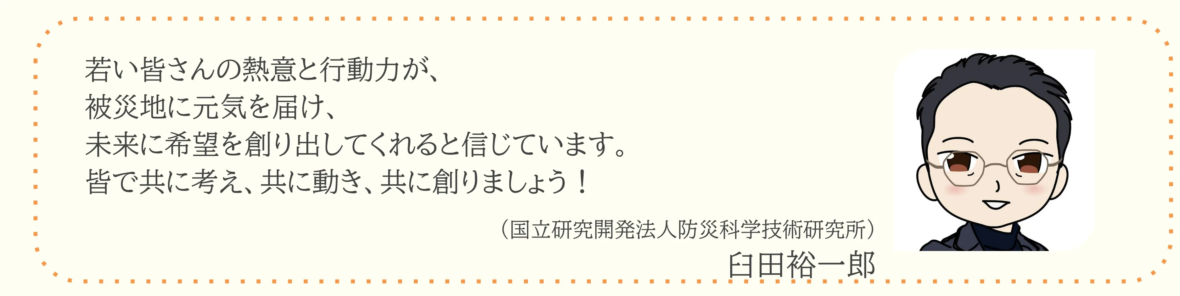 現在は国立研究開発法人防災科学技術研究所に勤務しながら、若者と地域・防災をつなぐ取り組みを続けています。