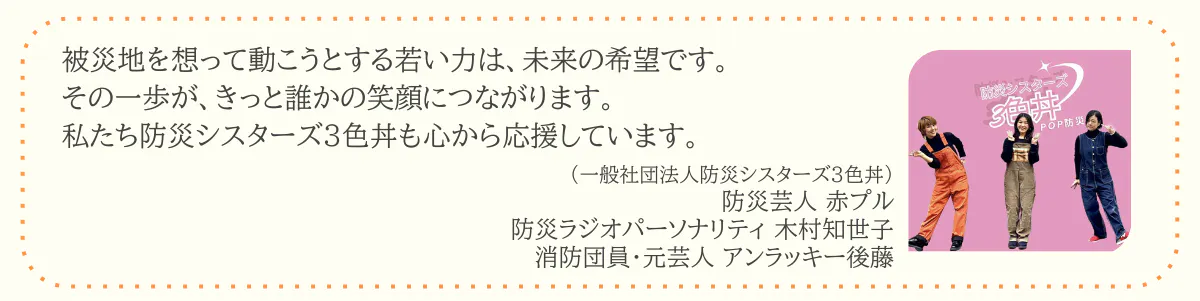 災害が起きたときに、すぐに動ける人がいる。そのことは、被災地にとっても、私たち全員にとっても希望です。
