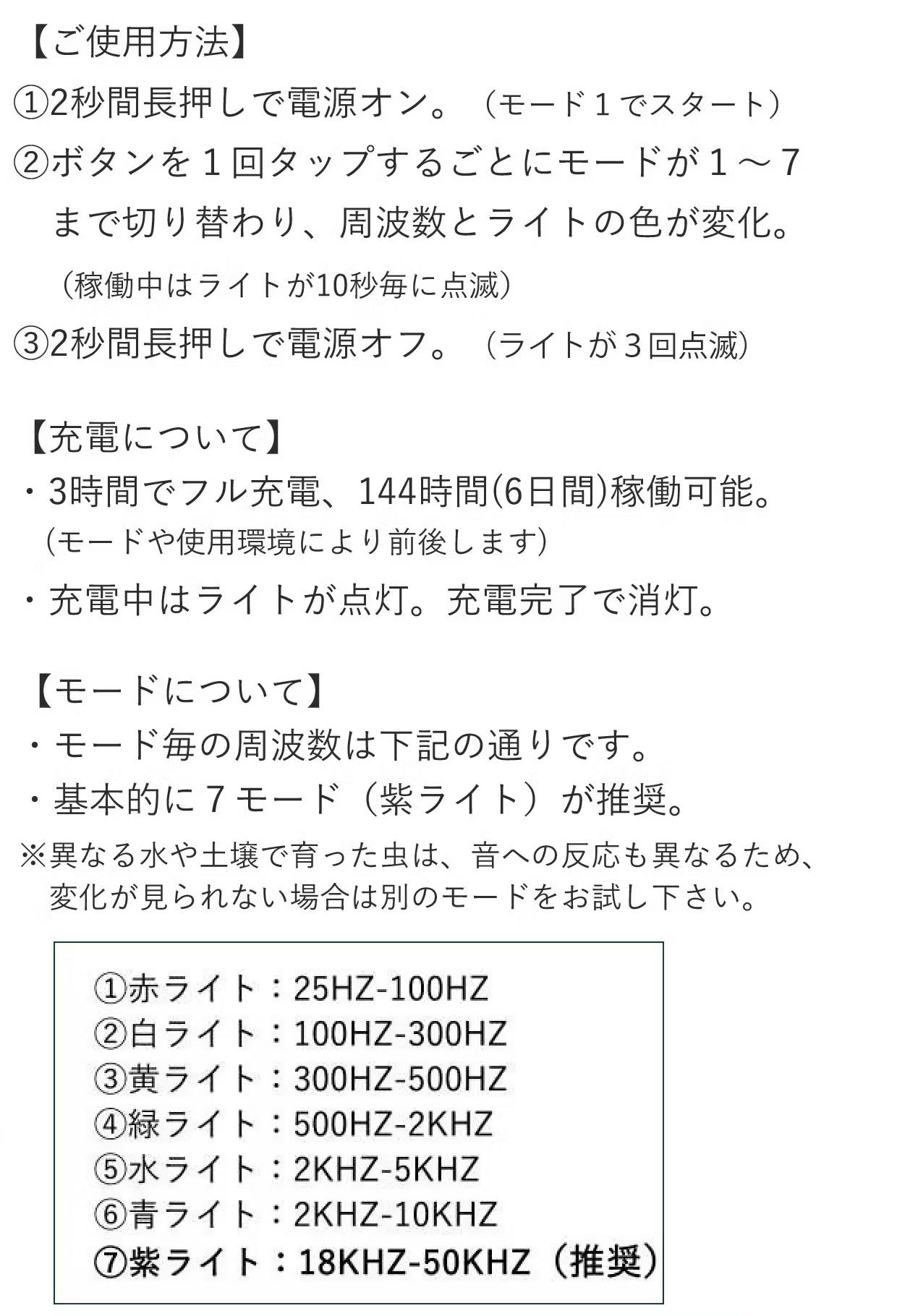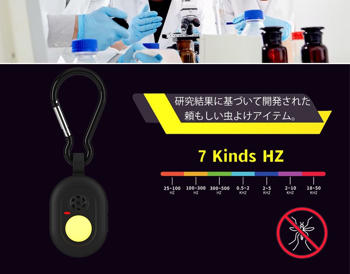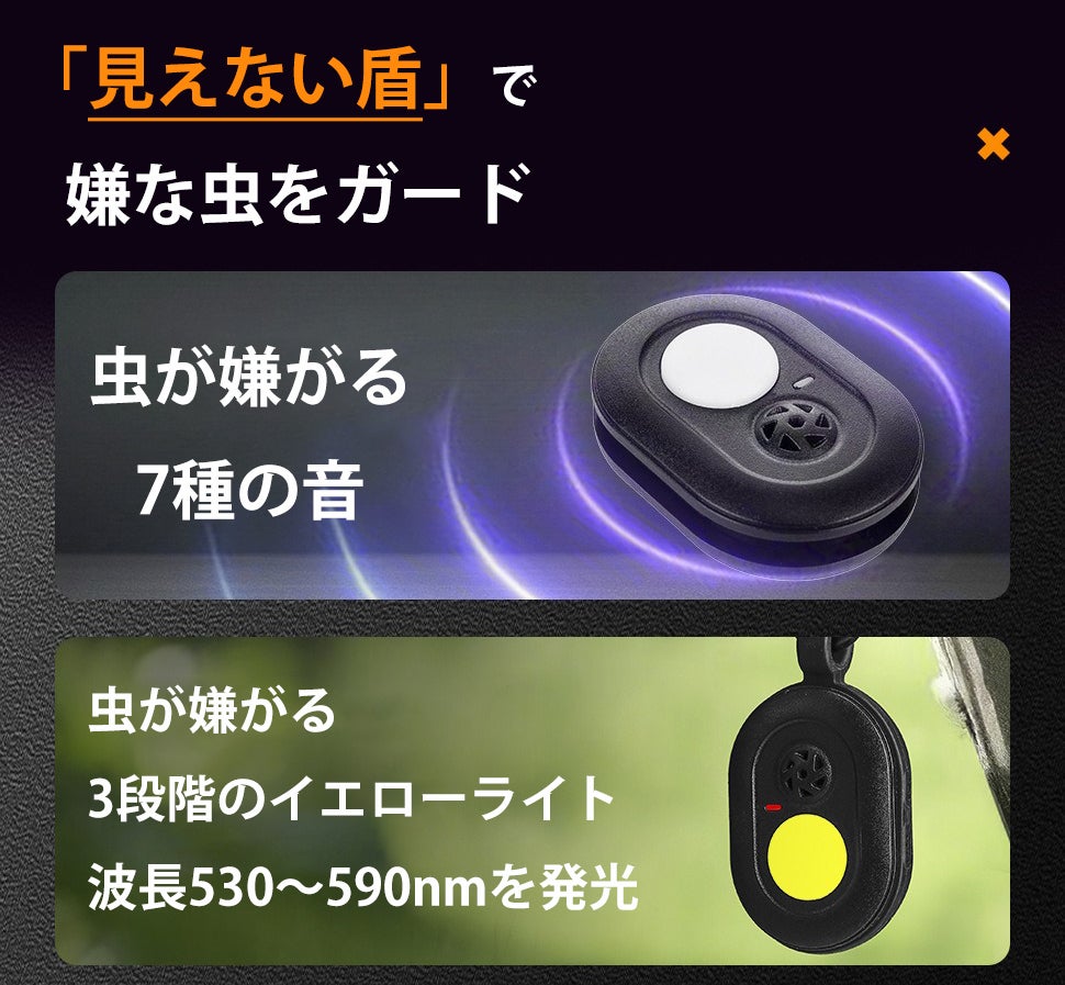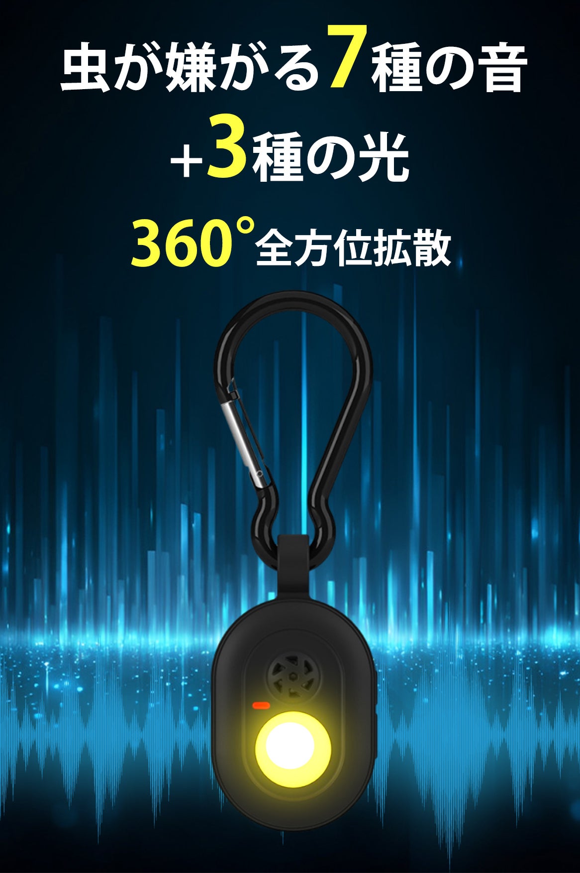 MINI REPELⅡは、虫が嫌がる7種の音と3種の光による“物理的”な虫よけシステムを採用。