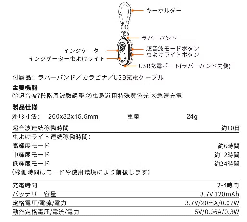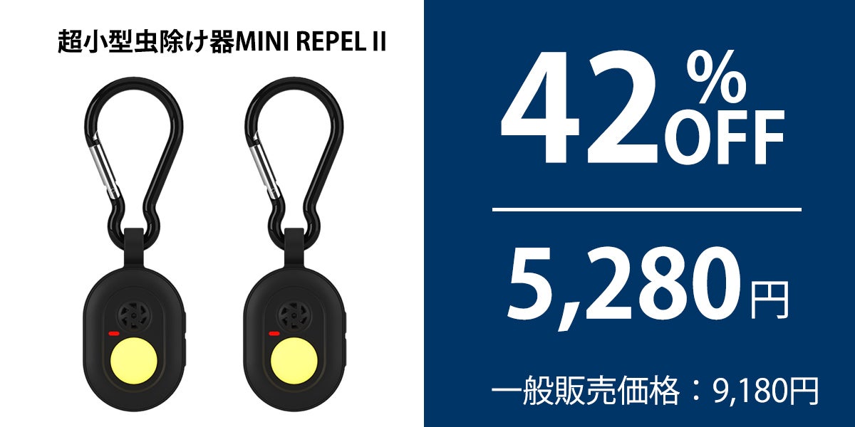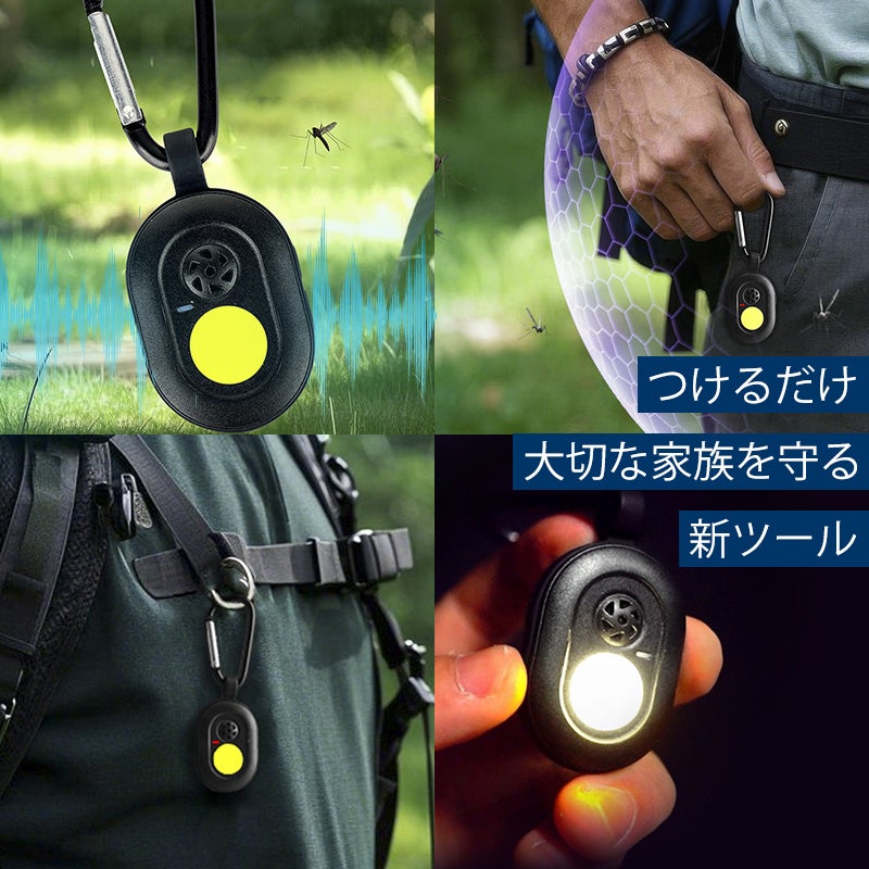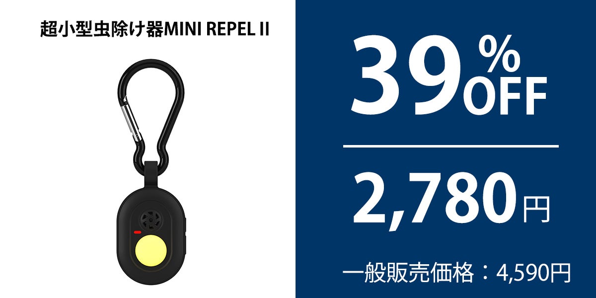 MINI REPELⅡは、蚊が嫌がる7種類の音波を360度全方位に拡散し、不快な音で虫の接近をブロックします。人間の耳にはほとんど聞こえないほど微弱ですが、虫にとってはしっかりとした刺激になります。