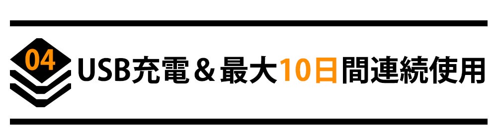 USB経由で手軽に充電でき、フル充電でなんと最大10日間連続使用が可能!