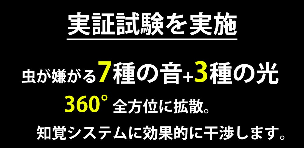MINI REPELⅡは、虫が嫌がる7種の音と3種の光による“物理的”な虫よけシステムを採用。