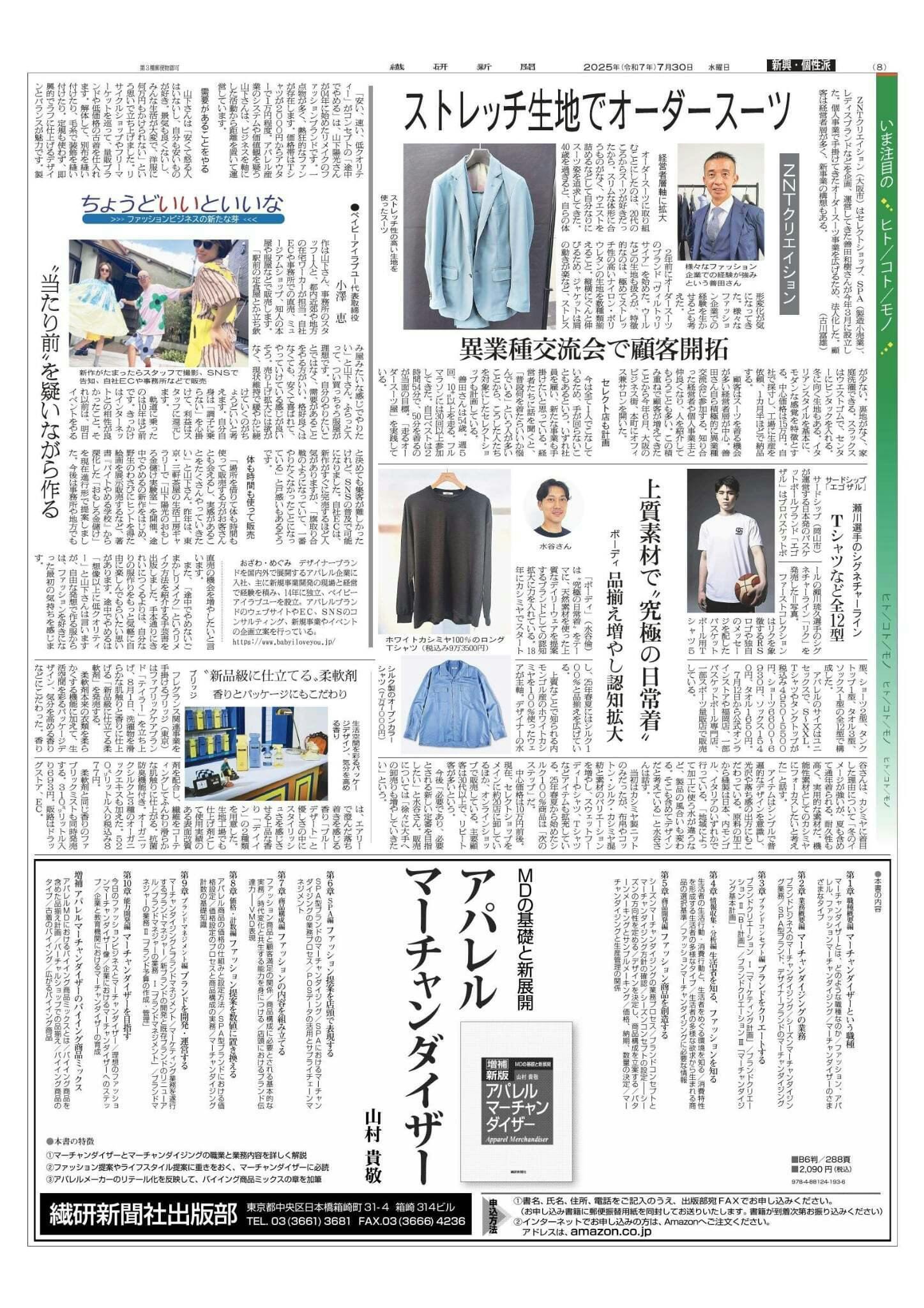 先日、なんとアパレル業界紙の繊研新聞さんにデカデカと掲載いただきました〜↑↑↑