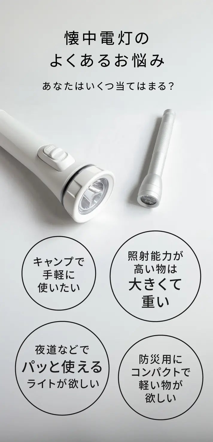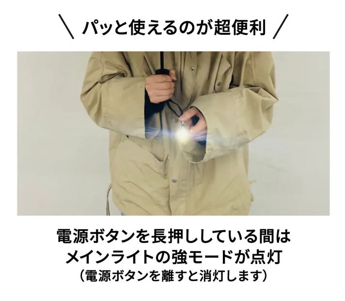 手のひらに収まるコンパクトなボディに、多機能ライト、防水防塵、耐衝撃、マグネット付きなど、頼れる性能をぎゅっと詰め込みました。
