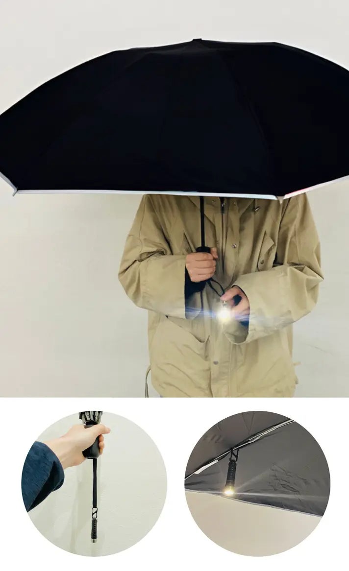 「傘に足元を照らすLEDライトをつけてほしい。できれば取り外しが可能だと嬉しい。」