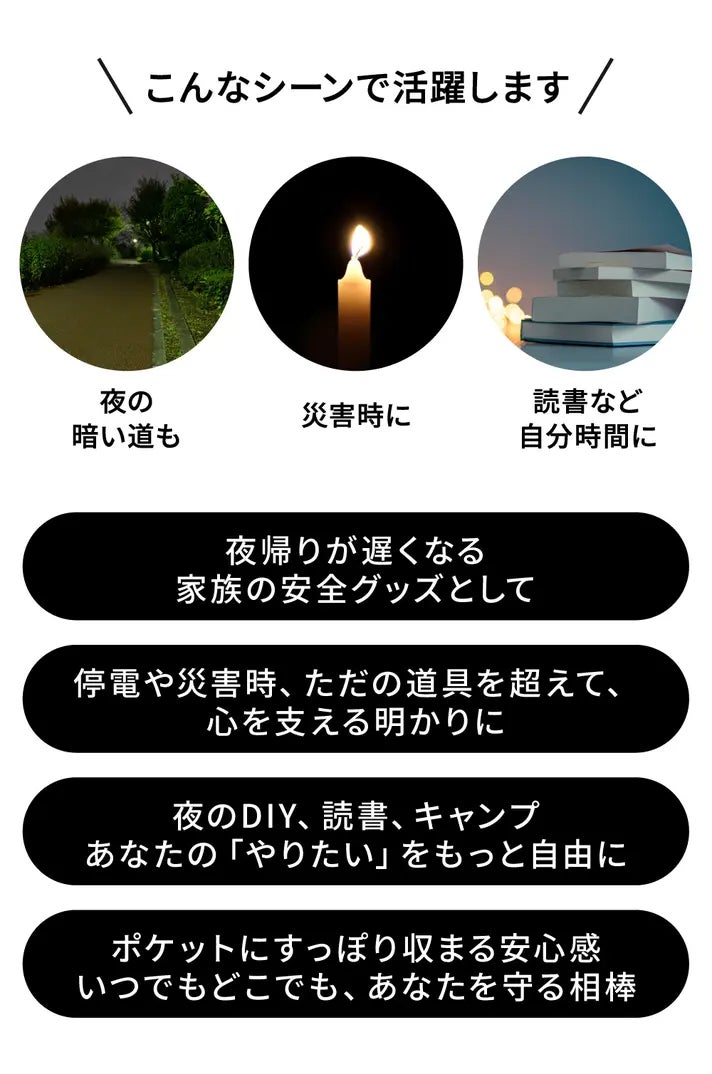 このライトが皆さまの毎日に安心を届けられる存在になることを心より願っております。