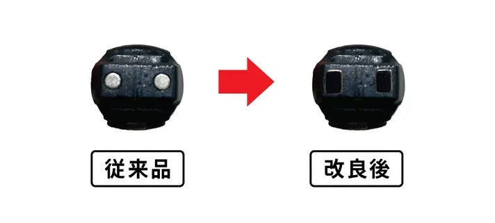 磁石の強度を改良し、より安定しました(左:従来品/右:改良品)