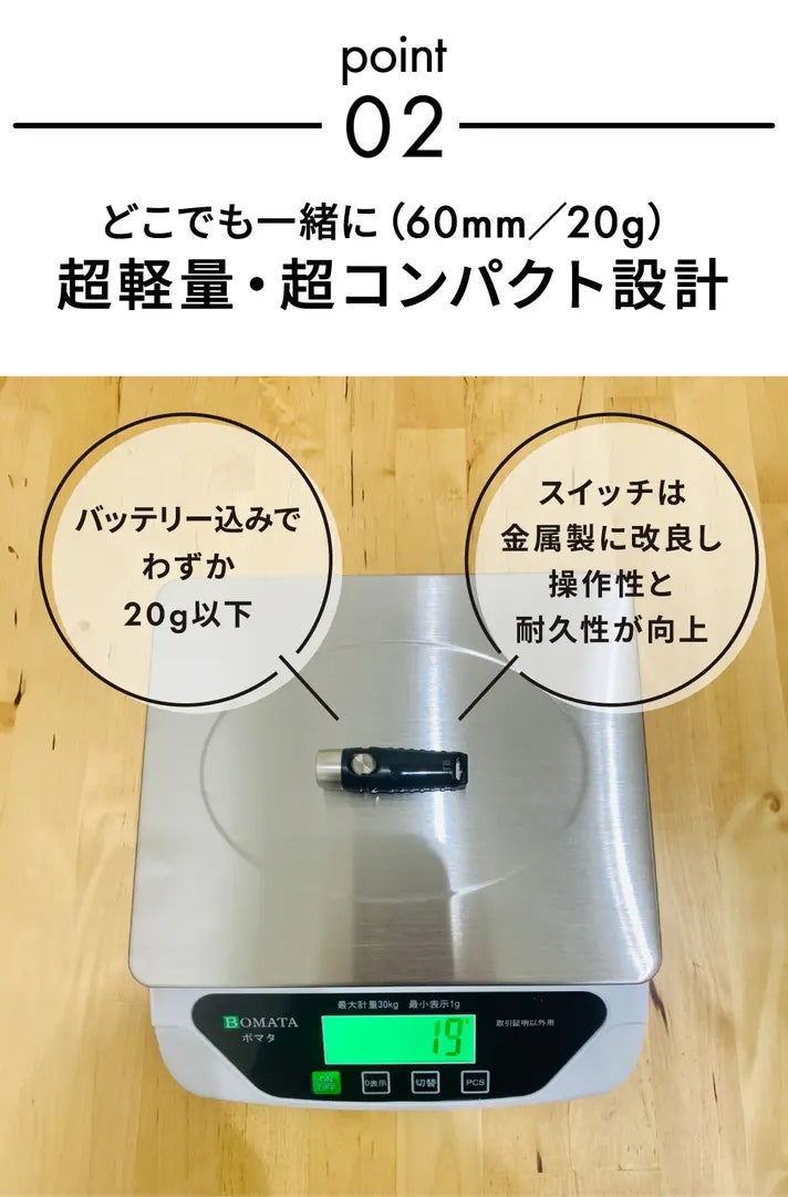 TorchBuddyは、超軽量・超コンパクトでありながら、明るさや多機能性にも一切妥協していません。