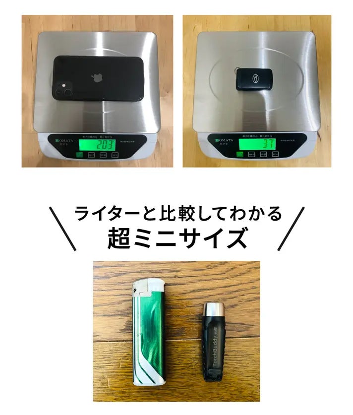 TorchBuddyは、たった20gでスマートフォンよりも明るく照らします。
