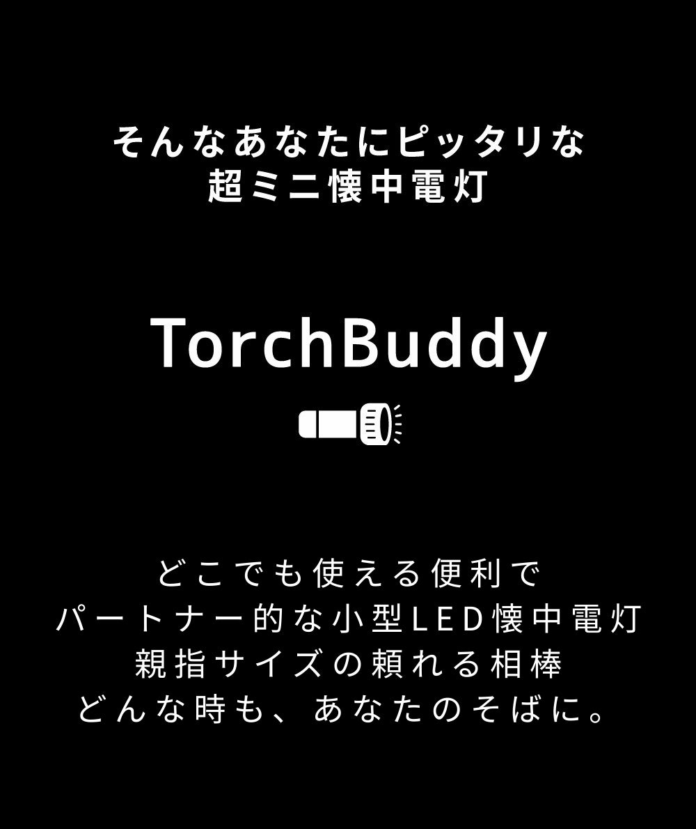 TorchBuddyは、「Torch(懐中電灯)」と「Buddy(相棒)」を組み合わせた、どこへでも連れていける“あなたの相棒”のような小型LED懐中電灯です。