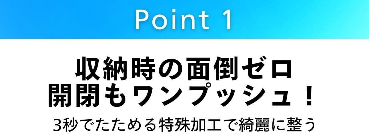 綺麗にしかたためない特殊加工で収納もクルッと3秒で完了!
