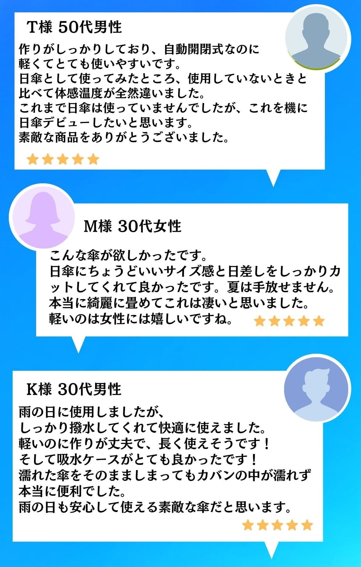 不快な日差し対策はもちろんのこと、雨風にも強い頼れる1本です。