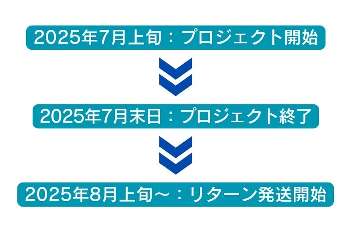 ※本文中に記載させていただいたスケジュールは、あくまでプロジェクト公開時点の予定です。 クラウドファンディング販売の性質上、配送遅延のおそれがございます。