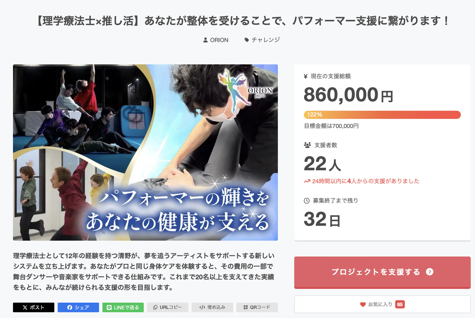ORION代表(アーティスト支援):https://www.orion-physio.com