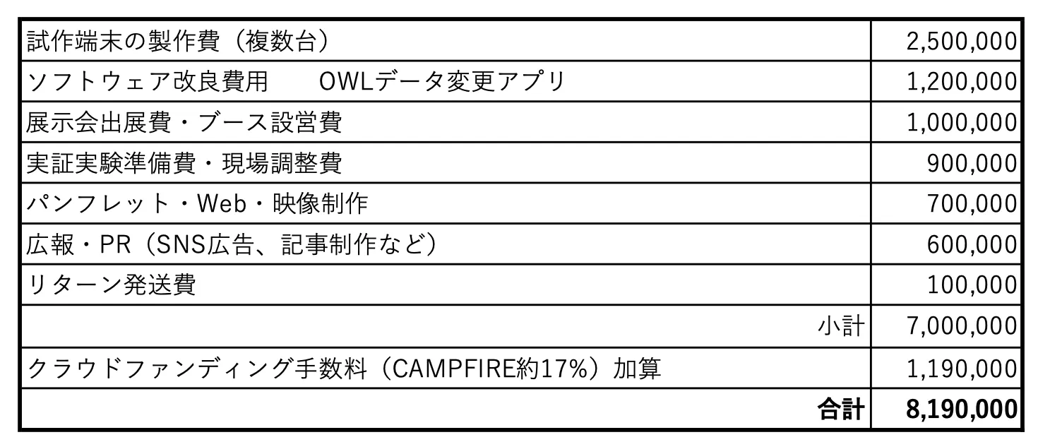 | 2025年7月から | 試作端末の製作・OWLソフトウェアの追加、実証準備開始/パンフレット制作 |