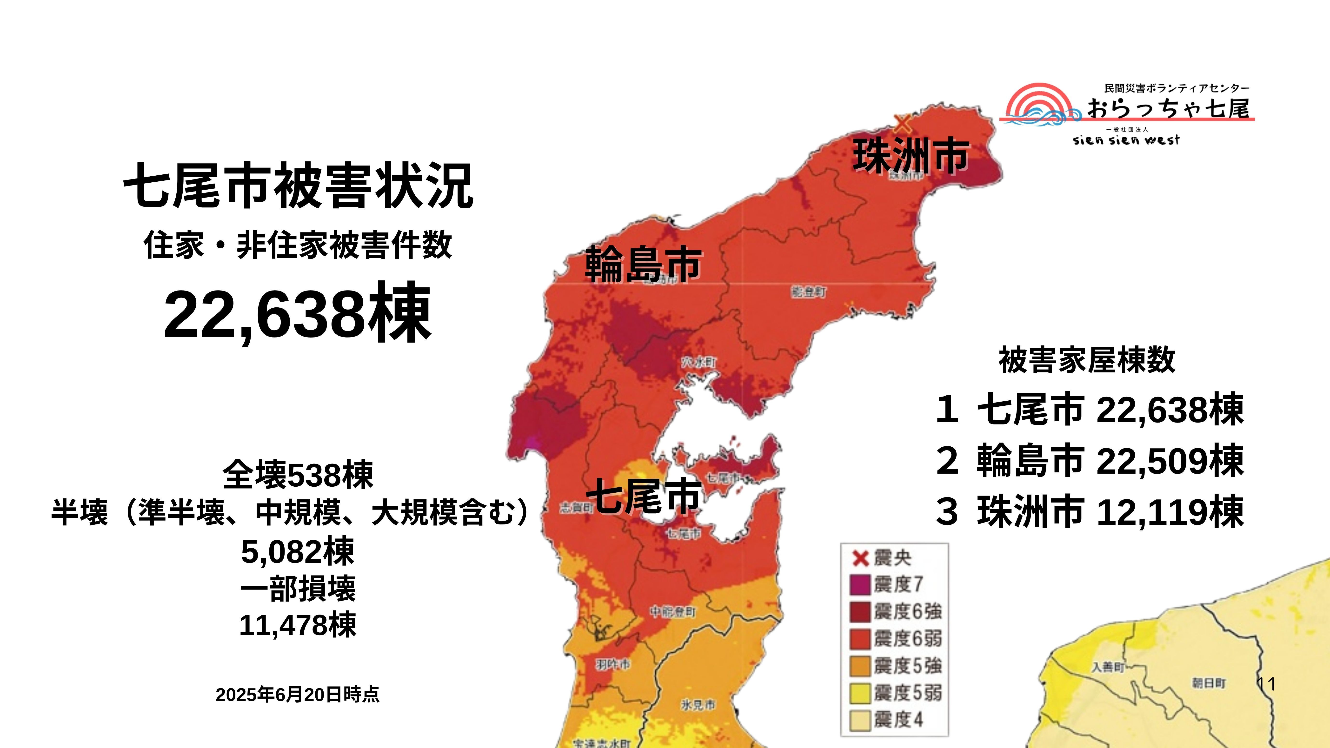 2025年6月時点、能登半島地震での七尾市の被害家屋数は22,638棟にのぼり、ついに輪島市を上回って県内最多となりました。