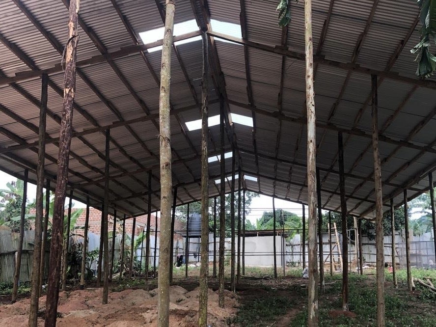 ウガンダの木を使った立派な柱と巨大な屋根で、なかなかの迫力が出てきました!