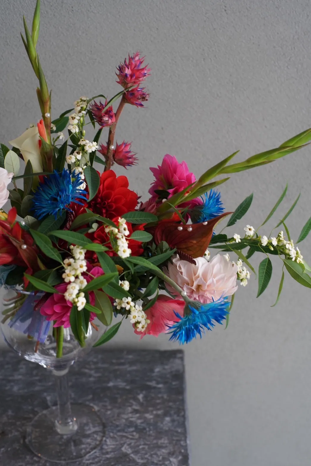 産地や生産者にこだわった新鮮な花材を使い、個性的で印象深いブーケやアレンジメントを制作。