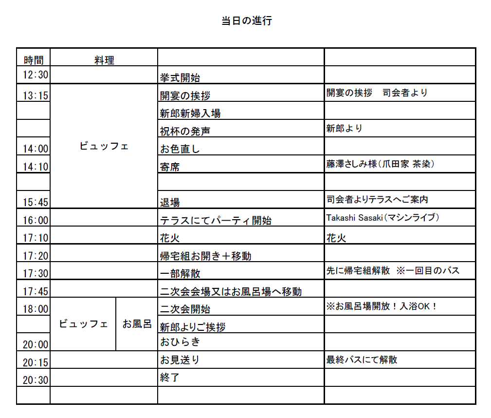 ゲストや親族、参加者すべてが日常から切り離され、自由な時間と空間の中で行うウェディングにしていきます。