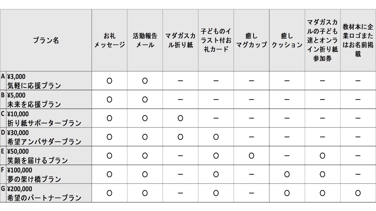 ご支援への感謝の気持ちを込めて、以下のようなリターンをご用意しています: