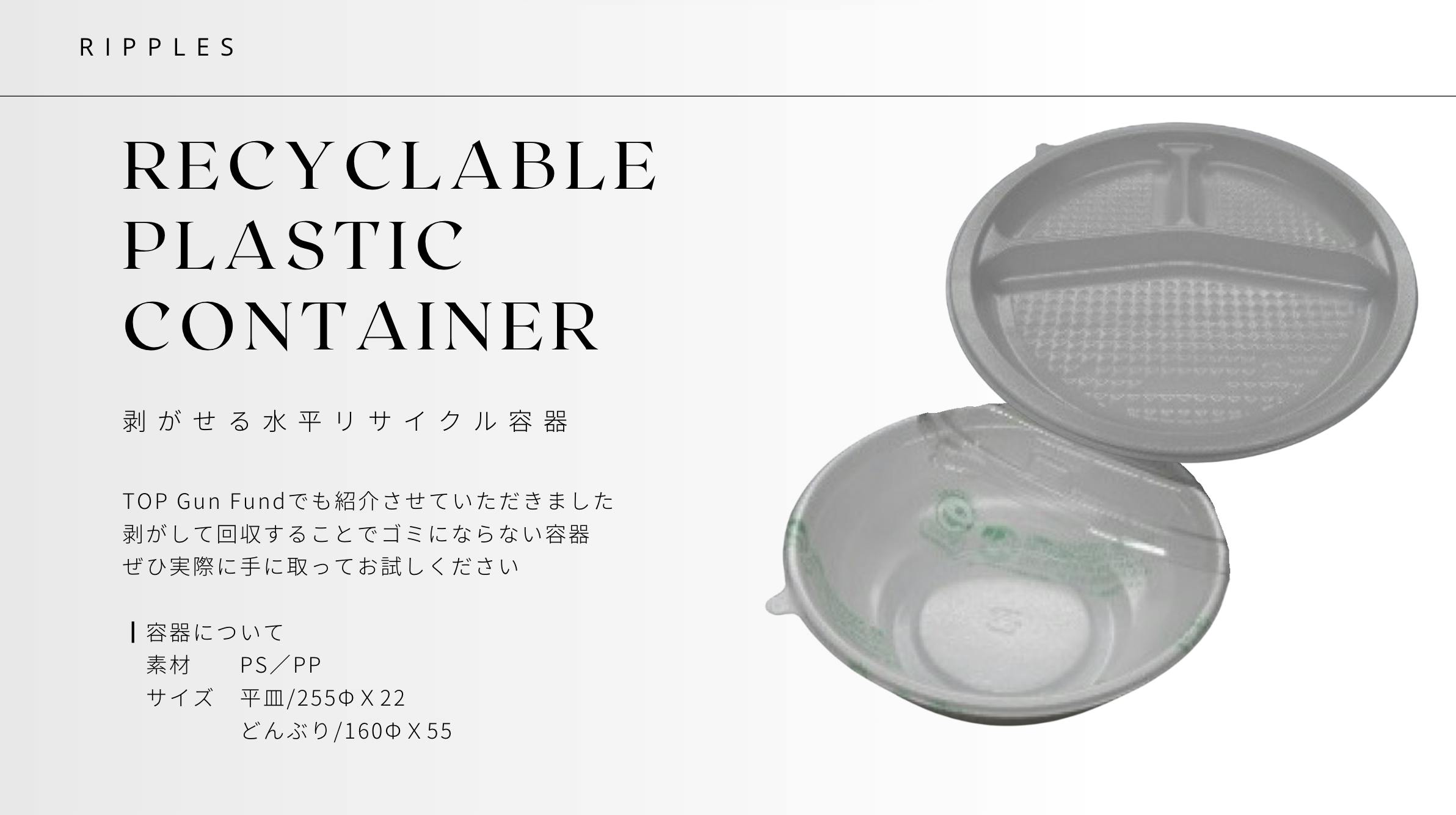 水平リサイクルを実現し、使用後の容器回収率を上げていくためにも、Ripples のお二人のお力が必要です。