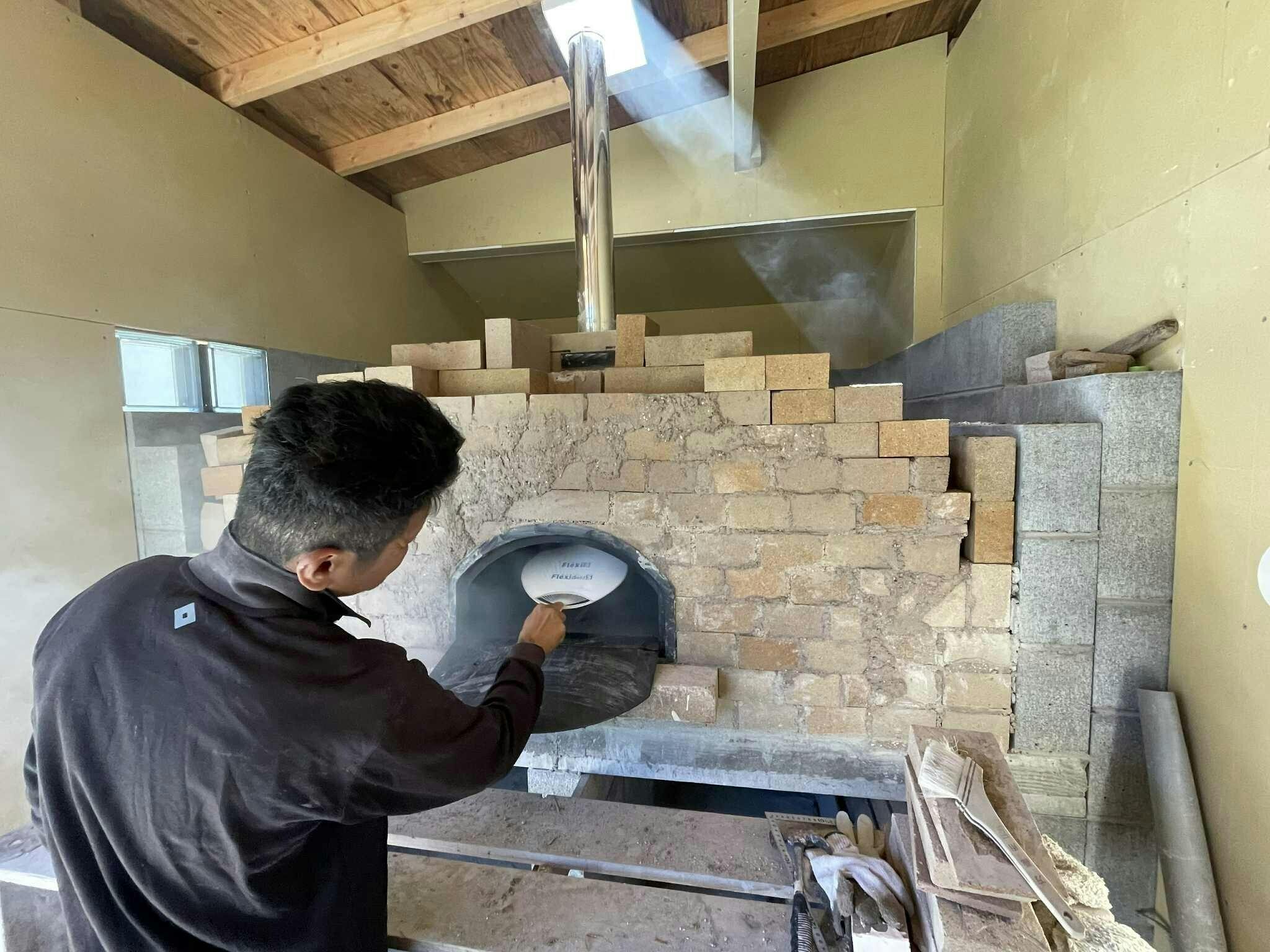 画像は今建設中の薪窯で、窯は何とか完成したようです。