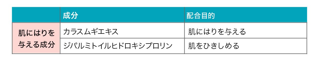 2種の「ハリ成分」で肌を引きしめる